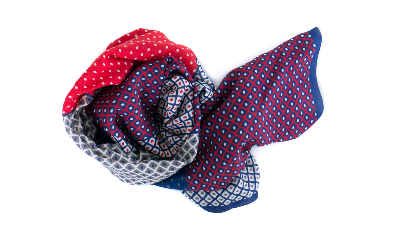 Einer unserer Schals als passendes Tüpfchen zur Tasche.